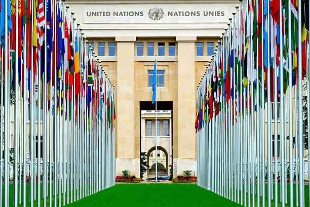 Notice the U.N. flag rises higher than all the others.